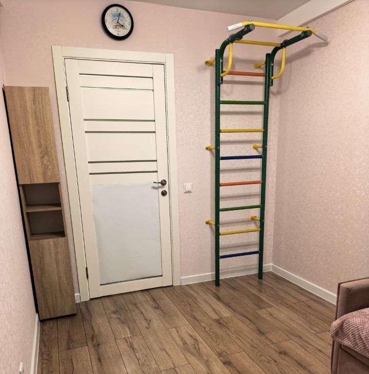 2. Маленькая комната - диван, детский уголок со шведской стенкой и магнитной доской.