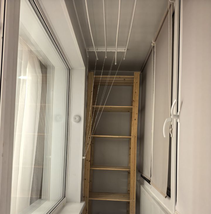 6. Балкон - лиана (потолочная сушка белья), стеллаж под необходимые вещи.