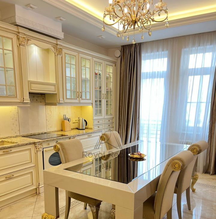 Бытовая техника: Полностью оборудована необходимой бытовой техникой высокого класса, включая посудомоечную машину, кондиционер, стиральную машину, холодильник, микроволновую печь, варочную поверхность, духовой шкаф, вытяжку, телевизор