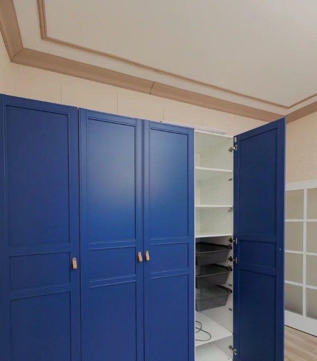 В спальне большая двухспальная кровать 180х200, новый ортопедический матрас, шторы блэкаут, вместительный гардероб.