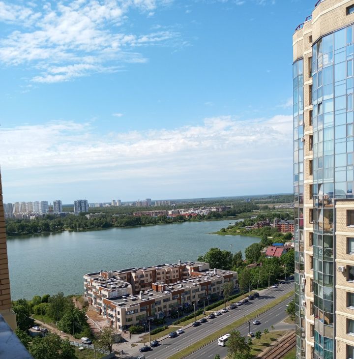 Панорамные окна в пол во всех комнатах дают много света и ощущение пространства. Высокий 24 этаж — тишина, хороший вид на район, не на шоссе.
