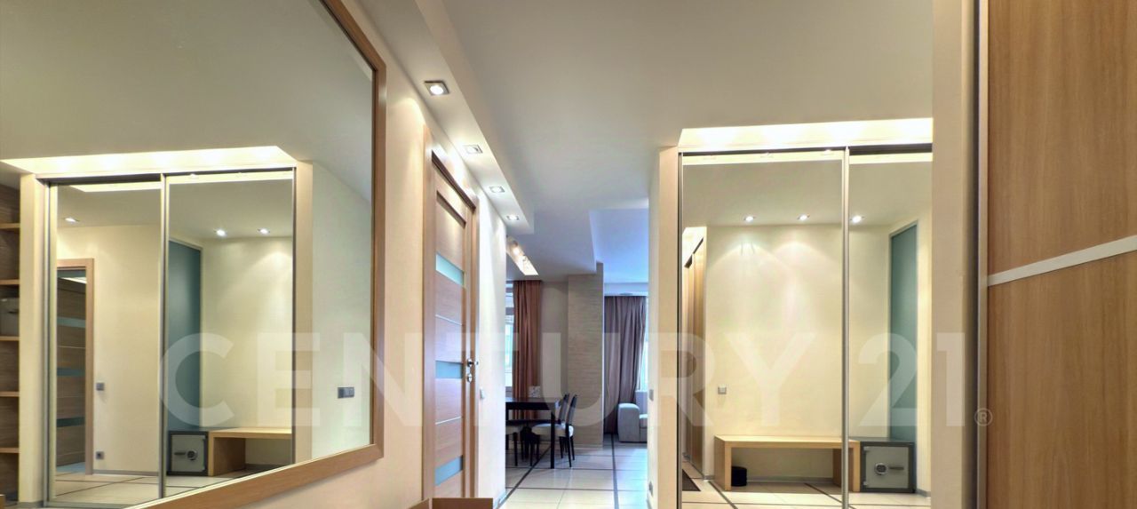 Зеркала: в квартире много панорамных зеркал, что придает больше пространства и света, в том числе и шкафу купе.
