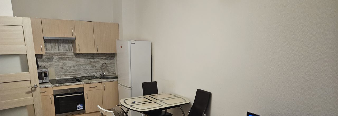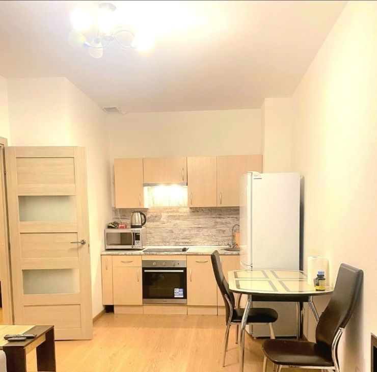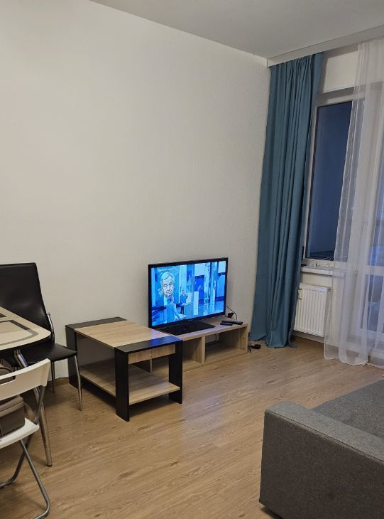 Сдаётся уютная евродвушка в современном доме 2019 года постройки. Общая площадь жилья составляет 37 кв. м, из них 10 кв. м - жилая площадь и просторная кухня-гостинная 16.5 кв. м. Квартира расположена на 3 этаже 25-этажного монолитно-кирпичного здания. Высота потолков 2.75 метра. Окна выходят во двор, что обеспечивает тишину и спокойствие. Закрытая территория комплекса, без машин, с из окна видна детская площадка.