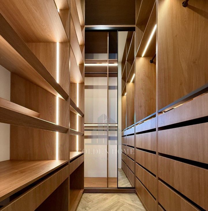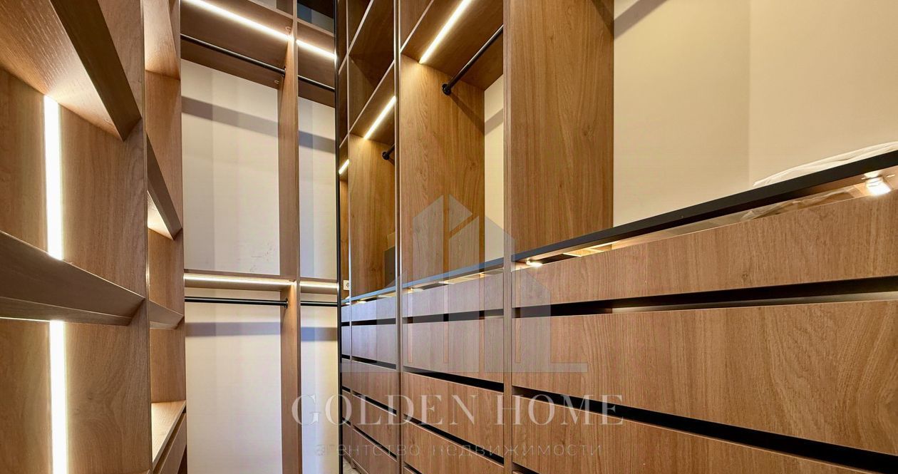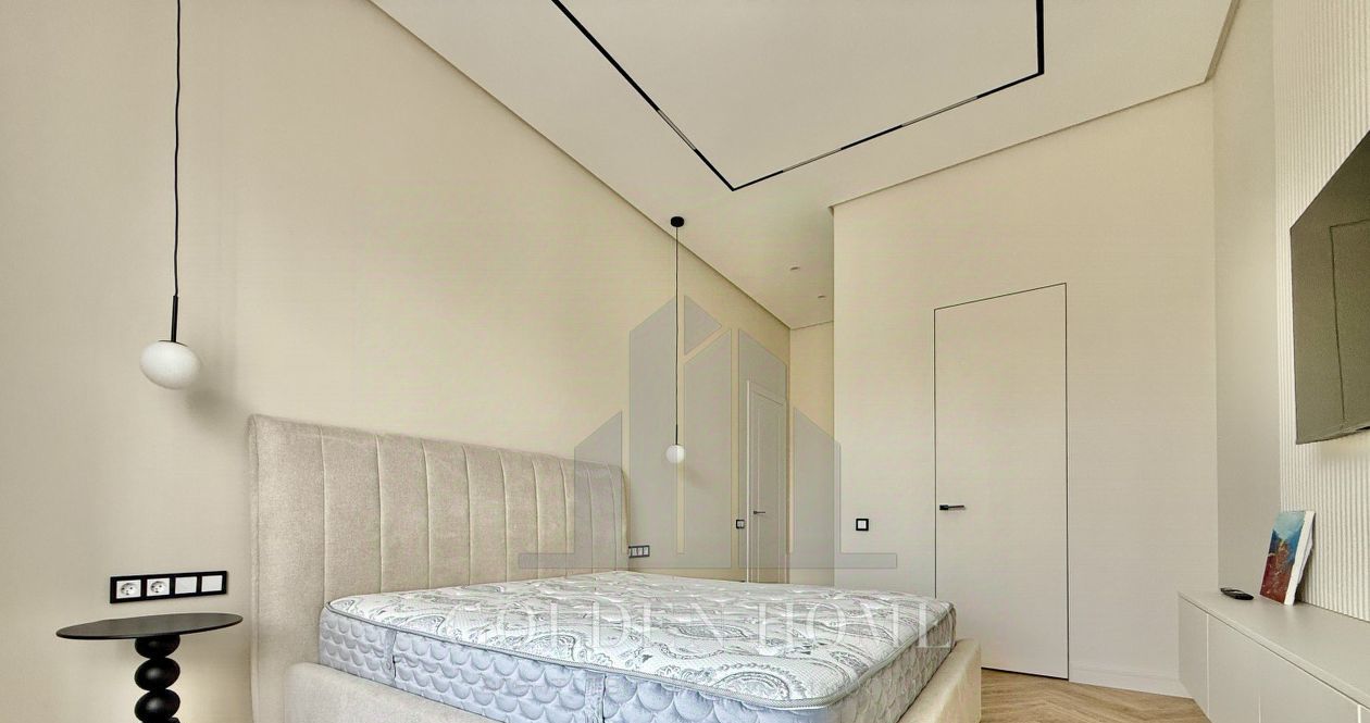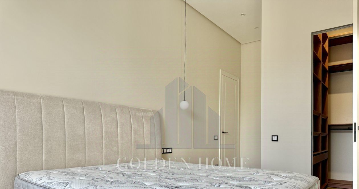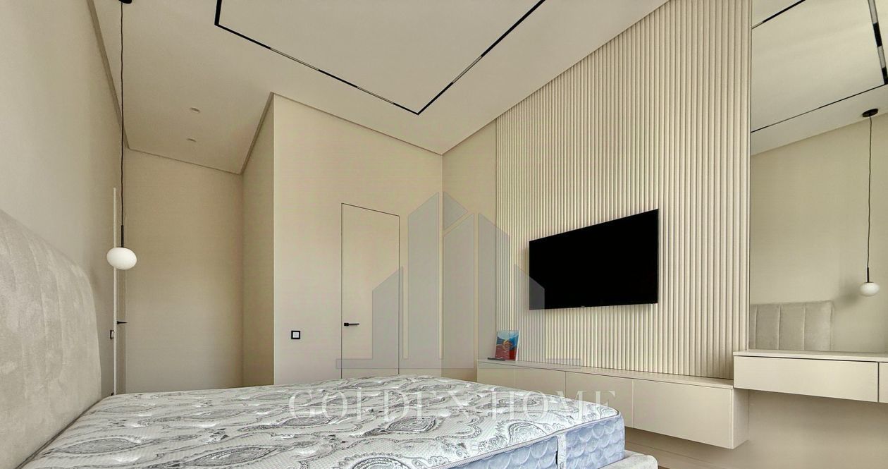 Спальня оборудована комфортной кроватью с матрасом премиум-класса, ТВ и гардеробной,
