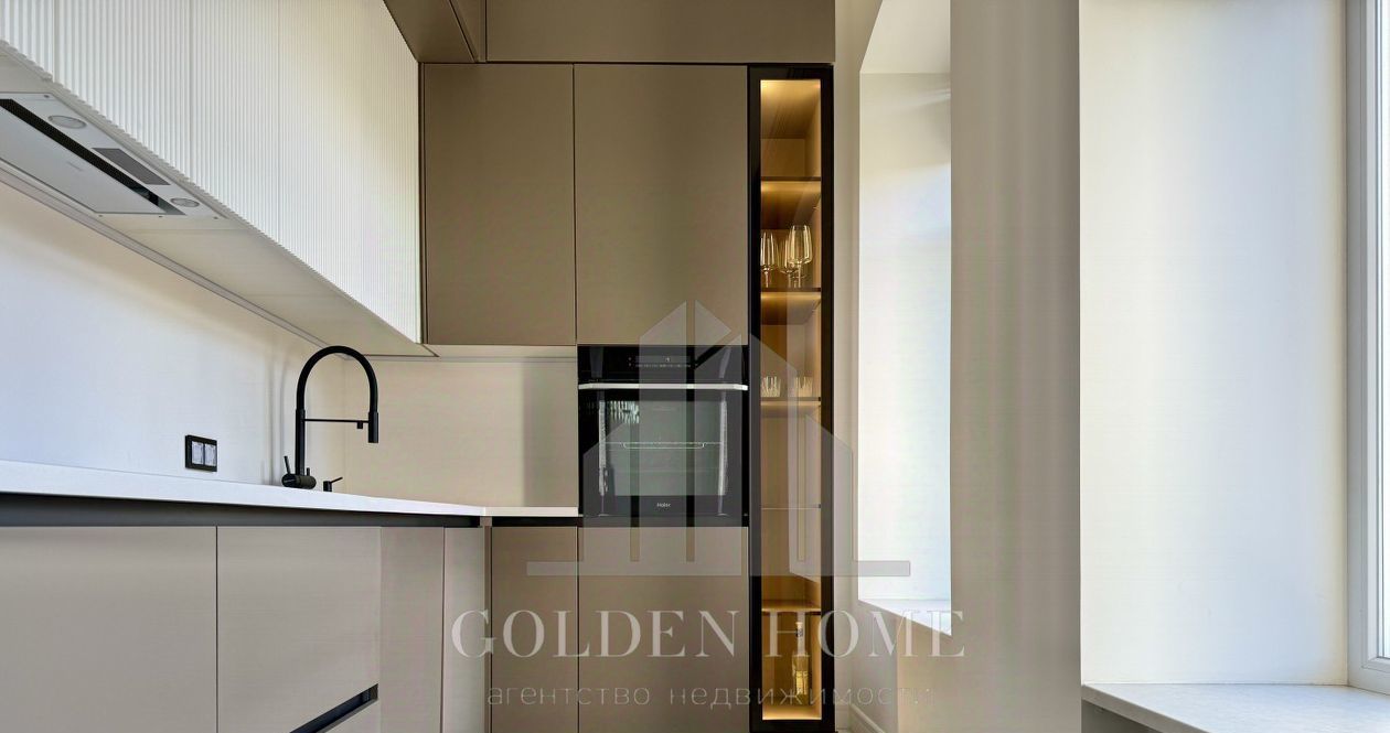 Кухонный блок укомплектован встроенной техникой Liebherr, индукционной панелью, системой водоочистки,