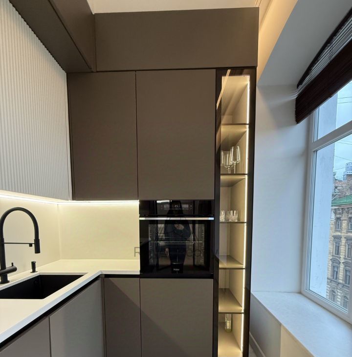 уютная зонированная кухня, где все продумано для Вашего удобства, просторная зона готовки, прекрасный вид, множество зон хранения, подсветки для создания атмосферы. Конечно же кухня оснащена всей необходимой техникой: варочная панель, духовой шкаф, встроенный холодильник, посудомоечная машина. Вся техника премиальных марок.