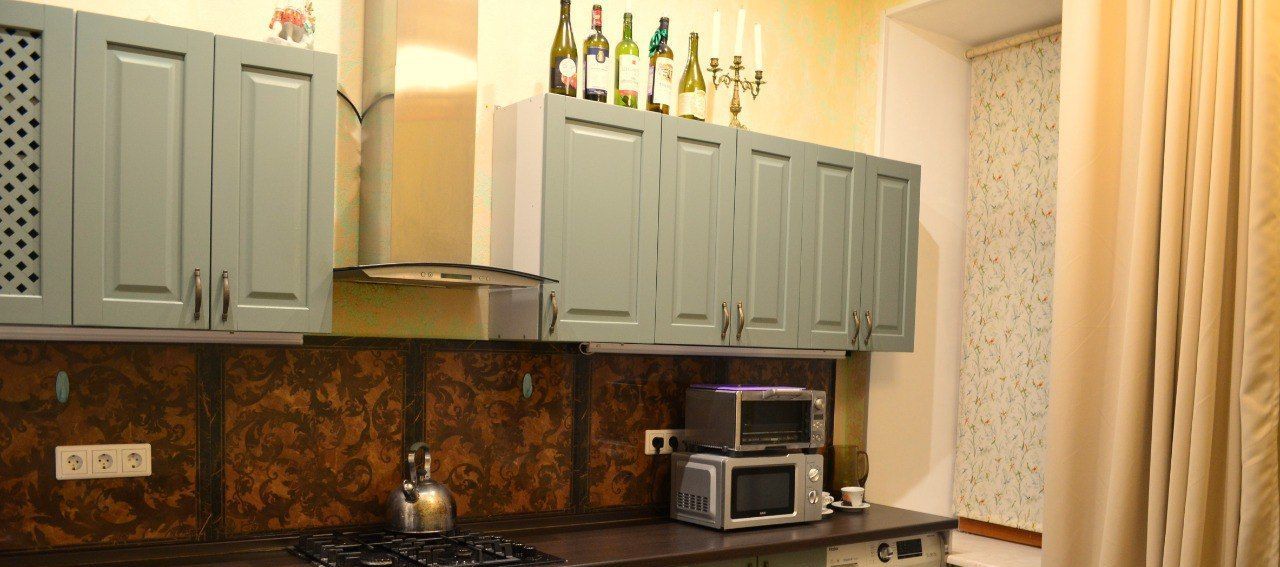 В квартире сделан свежий ремонт, и она полностью готова к постоянному проживанию. Здесь есть вся необходимая мебель и бытовая техника, а также мелкие бытовые принадлежности — вплоть до посуды. Особую изюминку интерьеру придаёт антикварная мебель, которая бережно сохранялась с момента постройки дома.
