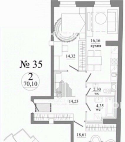 2-к кв. Санкт-Петербург Ждановская ул., 10 (71.0 м²)