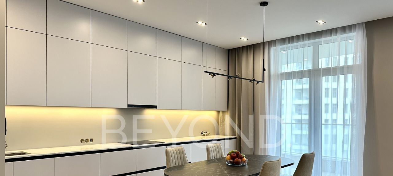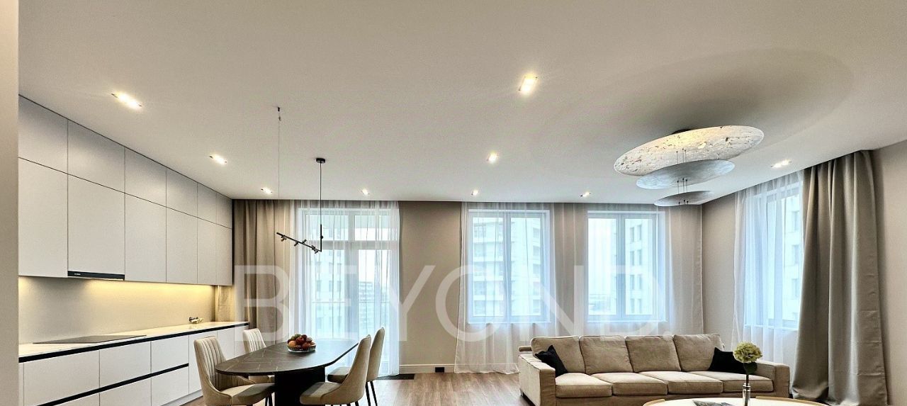 Предлагается в аренду просторная, светлая квартира площадью 150 кв. м с актуальным современным ремонтом без амортизации.