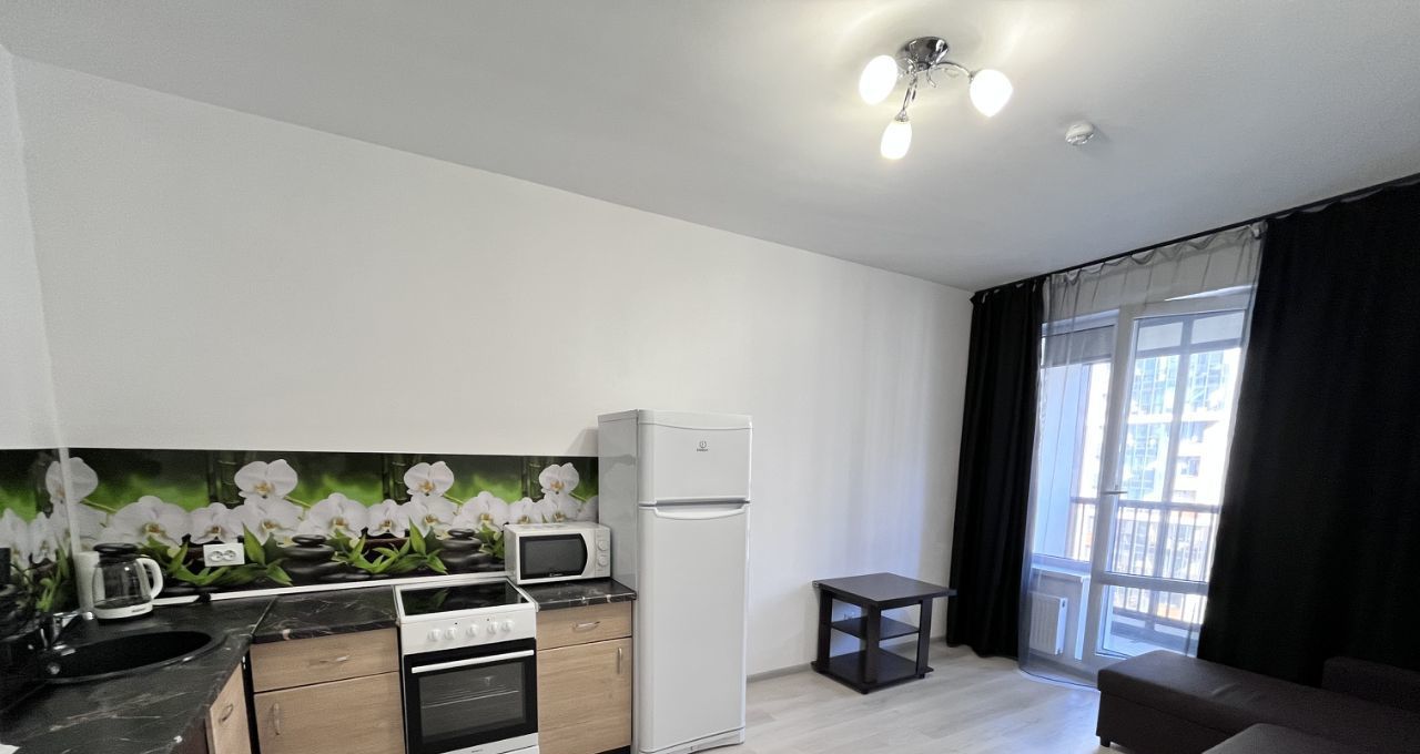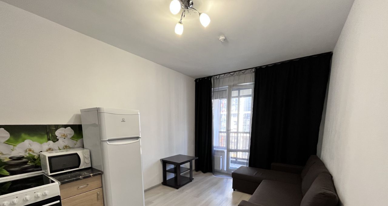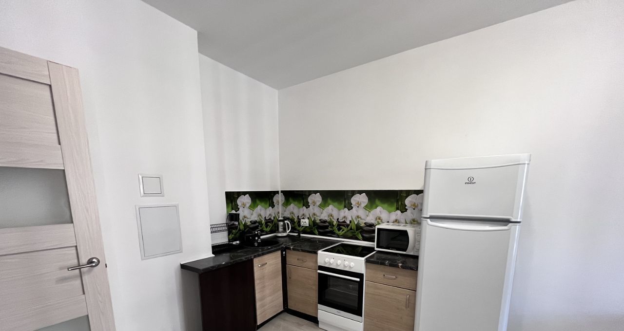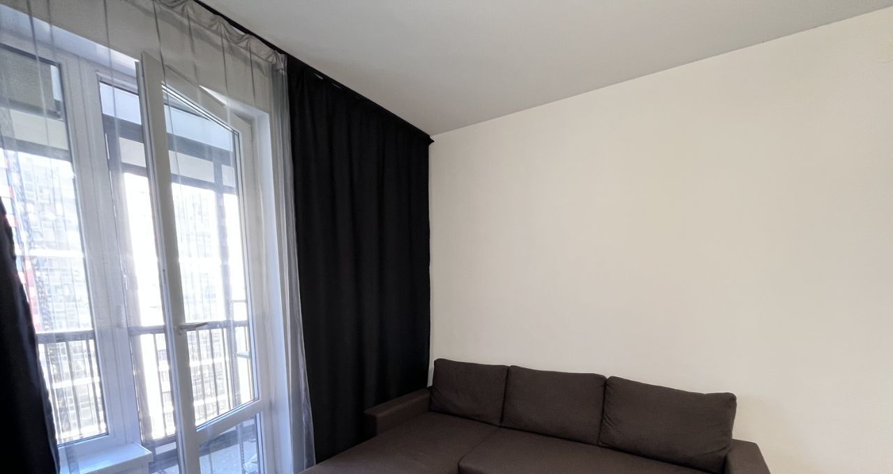 В жилом комплексе расположена уютная квартира, на кухонной зоне установлен удобный диван, который можно использовать как дополнительное спальное место, а также имеется место для рабочей зоны, просторная лоджия. Окна выходят во двор, что обеспечивает тишину и спокойствие.