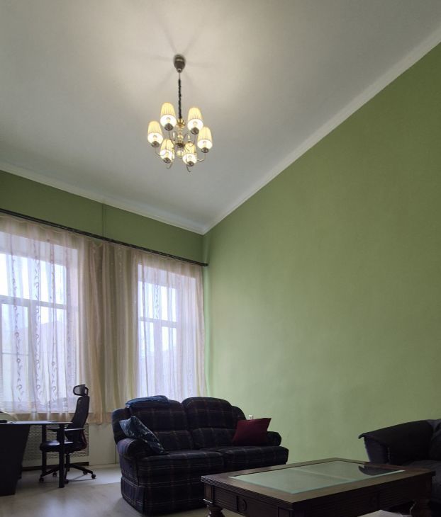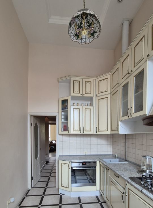 На длительный срок сдается двухкомнатная квартира, 87 кв.м. Светлая, просторная, двусторонняя. Высота потолков — 4,7 м. Два санузла, есть отдельная кладовая для хранения вещей.