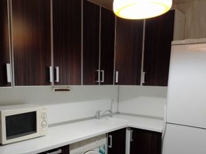 Присутствует: варочная панель, вытяжка, холодильник, стиральная машина, набор посуды, 2 раскладных 2спальных дивана, большой шкаф-купе, сушилка для белья, утюг, электрочайник, средства для уборки
