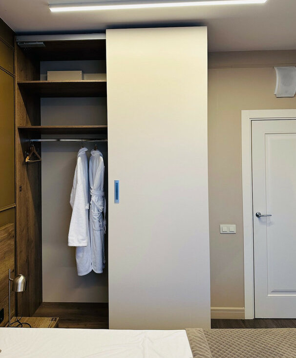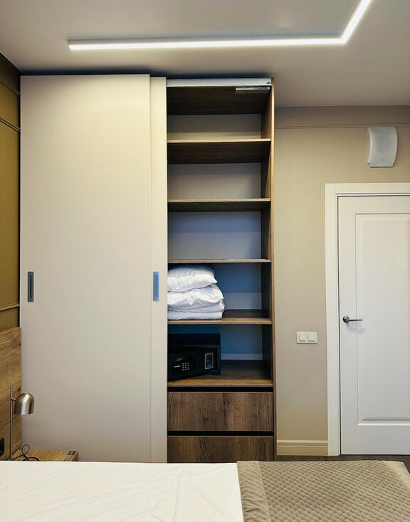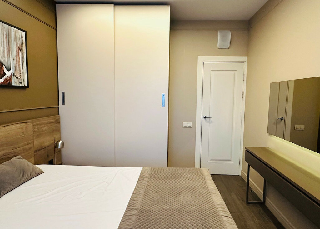 Двухспальная кровать с ортопедическим матрасом. Большой шкаф для хранения вещей. . Посудомоечная машина. Посуда и постельное белье.