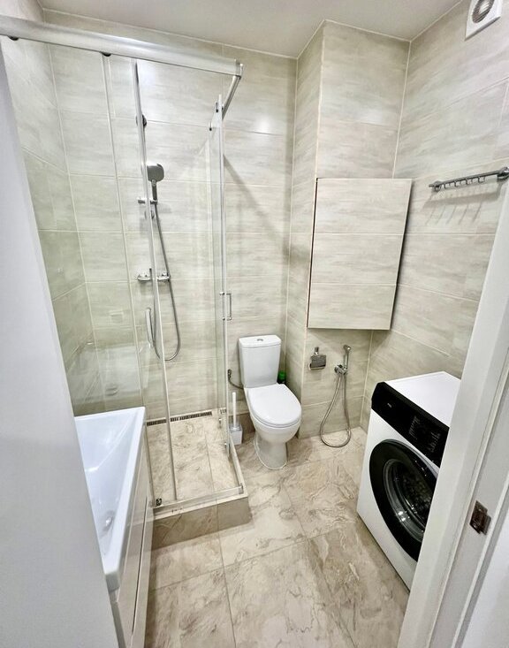 Есть всё необходимое для комфортного проживания мебель и техника( холодильник, плита, микроволновка, стиральная машина, посудомоечная машина, водонагреватель, два телевизора). Два сан узла.