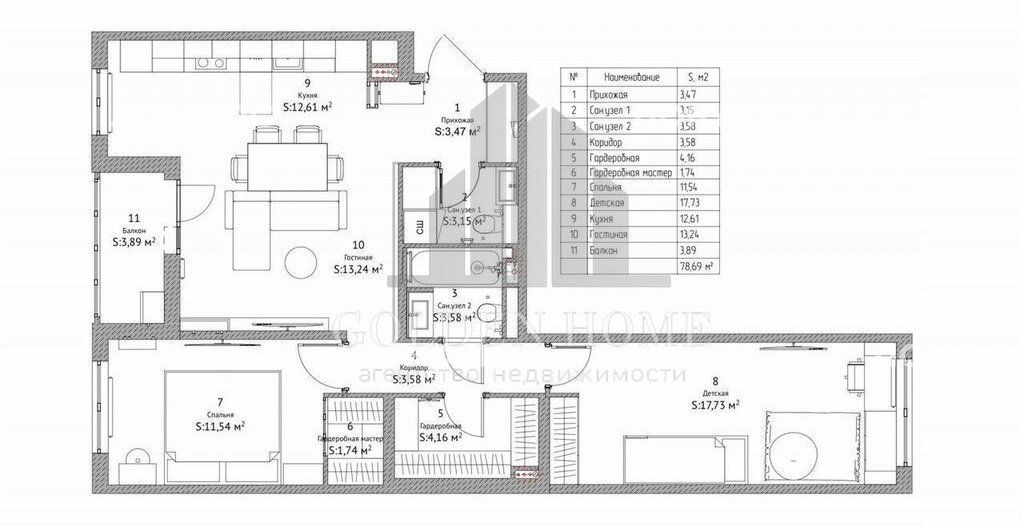 два санузла, гардеробная в спальне и просторная между комнат, балкон.