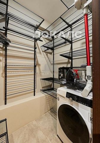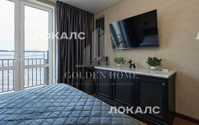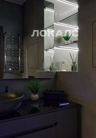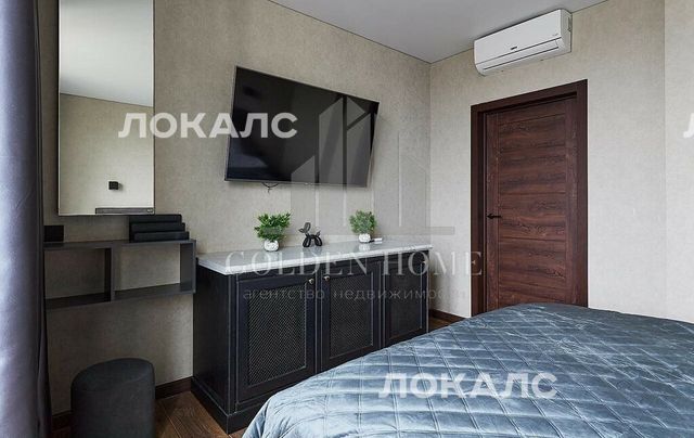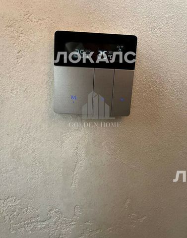 В квартире установлена система «умный дом». В спальне находится большой телевизор, а в ванной — аудиосистема.