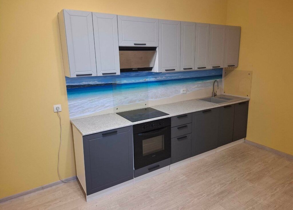 Квартира комфортной планировки: большой коридор, раздельный санузел, кухня 19.1 м² с выходом на застеклённую лоджию, две изолированные комнаты 18.2 м² + 14.2 м². Из мебели есть кухонный гарнитур с мойкой. Из техники - плита, вытяжка, посудомоечная машина. В комнатах мебели нет.