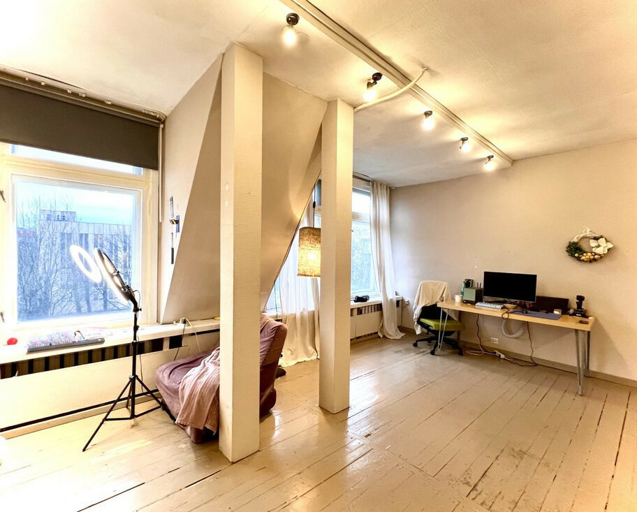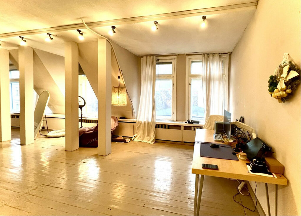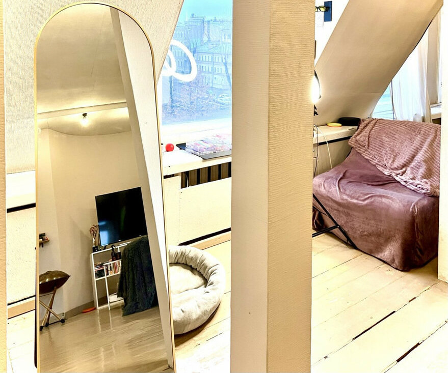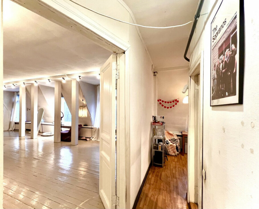Преимущества квартиры:просторная планировка, идеальная для творческих людей;мансардный этаж создаёт особую атмосферу и неповторимый облик пространства;удобное расположение — сочетание тишины сквера и доступности городской инфраструктуры.