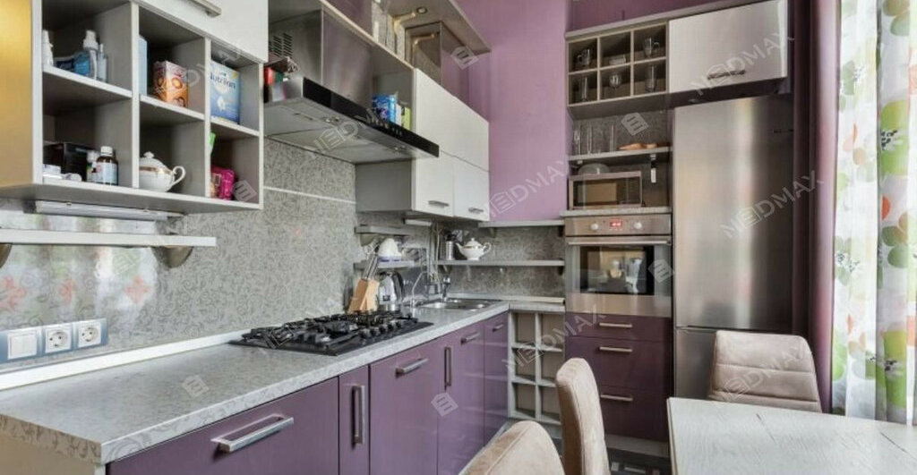 функциональная кухня, полностью укомплектованная бытовой техникой: холодильник, плита, духовой шкаф, вытяжка, стиральная и посудомоечная машины;