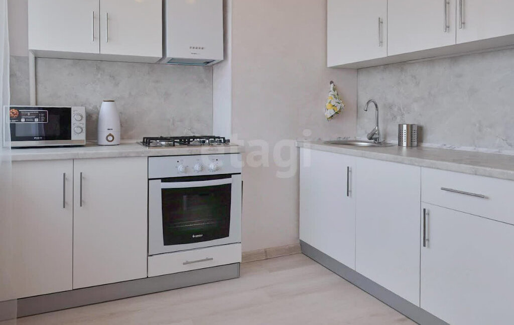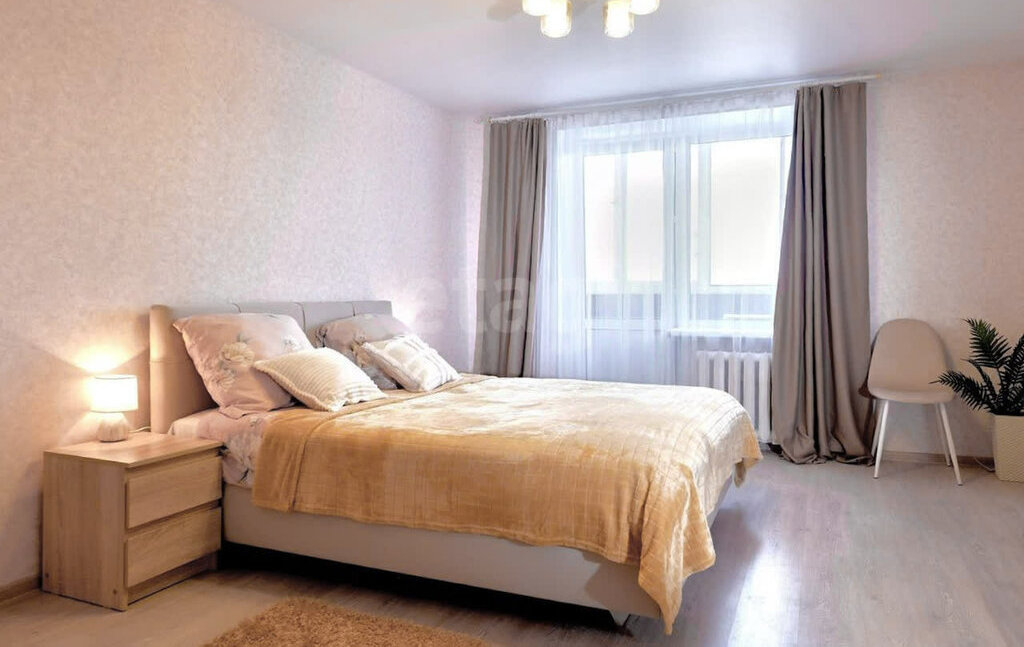Светлая кухня, гостиная с диваном, спальня с выходом на лоджию, раздельный санузел.