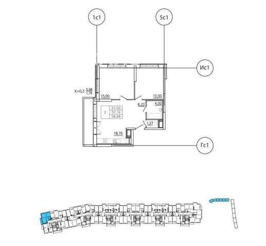 2-комнатная квартира: Санкт-Петербург, бульвар Головнина, 3к1 (59 м²)