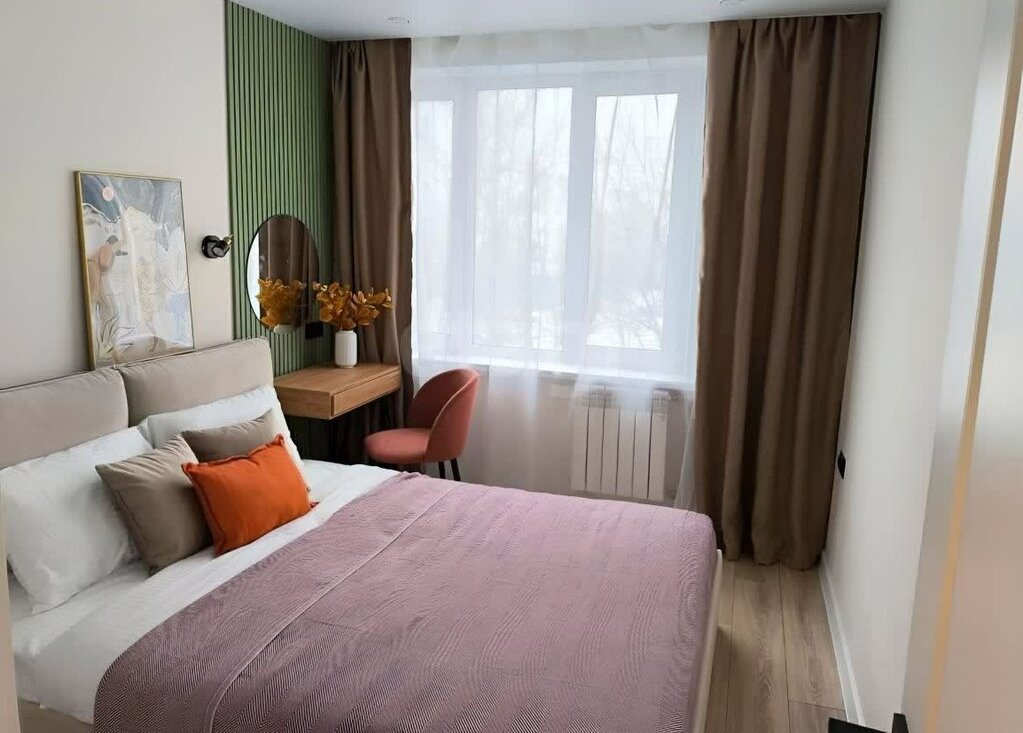 В квартире есть двуспальная кровать, большой шкаф, кухонный гарнитур, холодильник, стиральная машина и рабочий стол. Отличный вариант у метро с современным дизайном и всем необходимым для комфортной жизни!