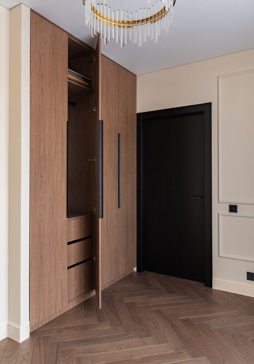 В прихожей предусмотрен вместительный встроенный шкаф для верхней одежды, обуви и сезонного хранения.