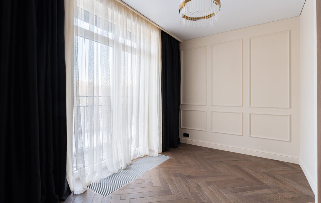 Большие окна наполняют квартиру естественным светом, западная ориентация формирует комфортную атмосферу в вечернее время.