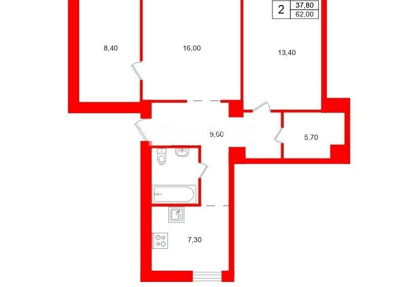 2-комнатная квартира: Санкт-Петербург, Дибуновская улица, 15 (62 м²)