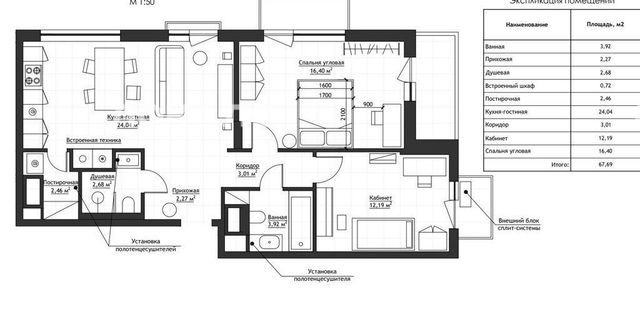 — 2 полных сан. узла, постирочная.