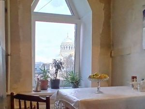 Квартира включает две изолированные комнаты площадью 13 и 21 кв.м, а также кухню площадью 13 кв.м. В помещениях есть необходимая мебель, установлены телевизор, холодильник, стиральная машина и газовая плита. Из окон открывается вид на восстановленный Храм иконы Божией Матери, а также на зелёный сквер. До залива можно дойти за 5 минут.