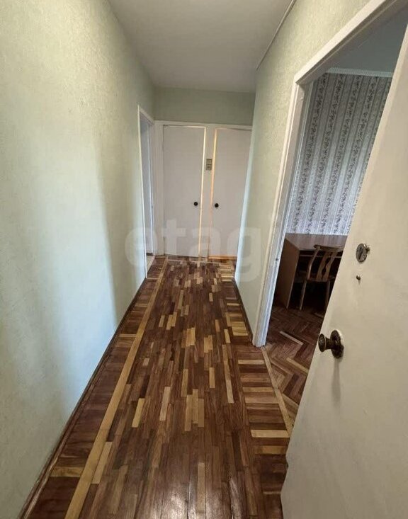 Напольное покрытие: в комнатах и коридоре — паркет, на кухне — плитка.