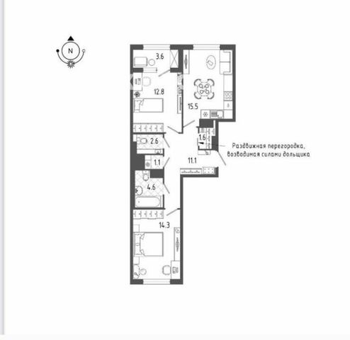 · Современная планировка: Удобное зонирование, большая кухня-гостиная, изолированные комнаты и просторная лоджия.