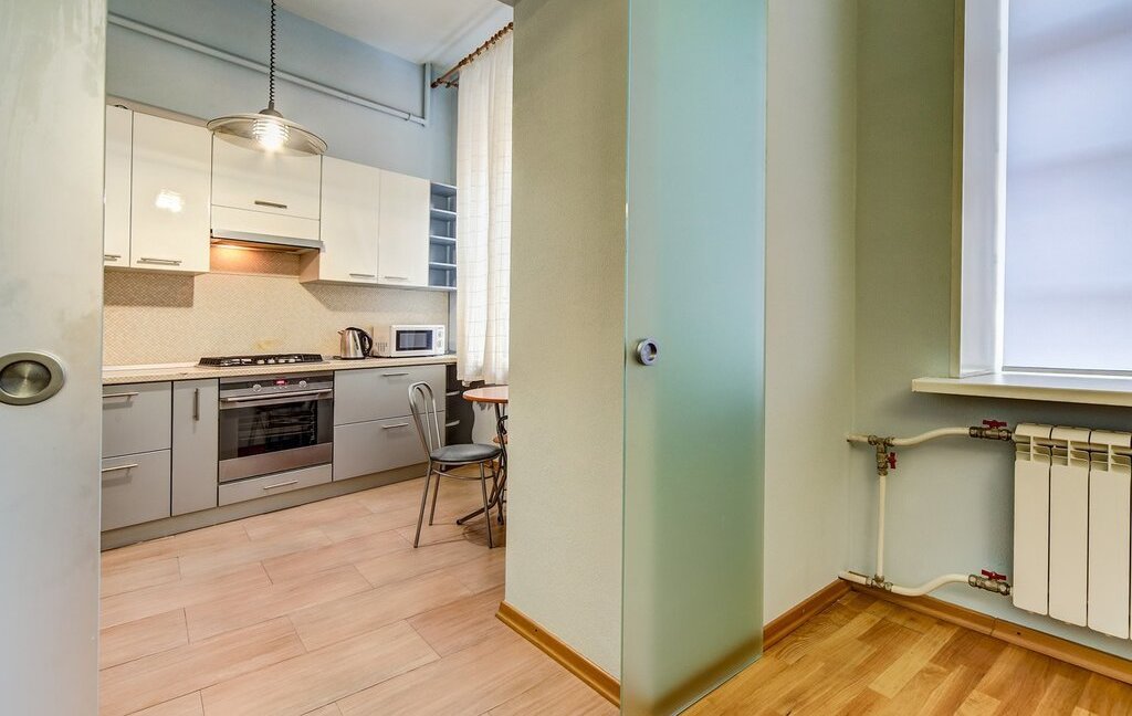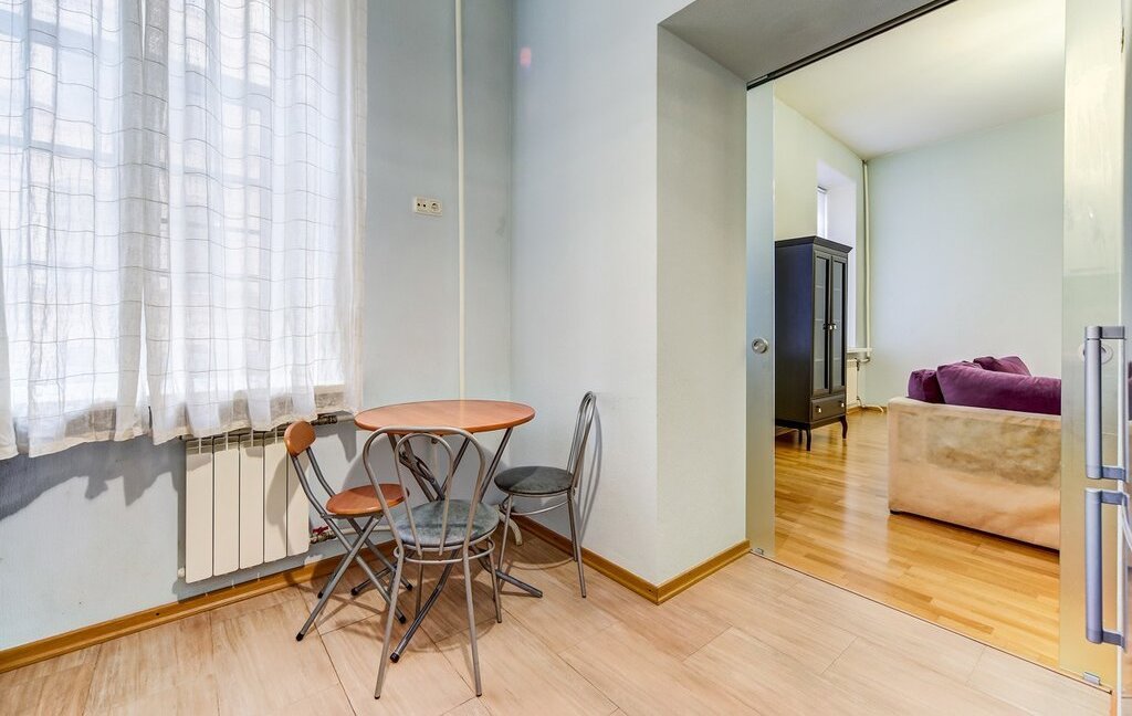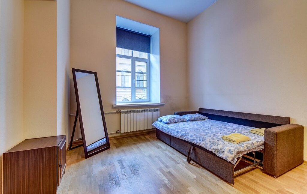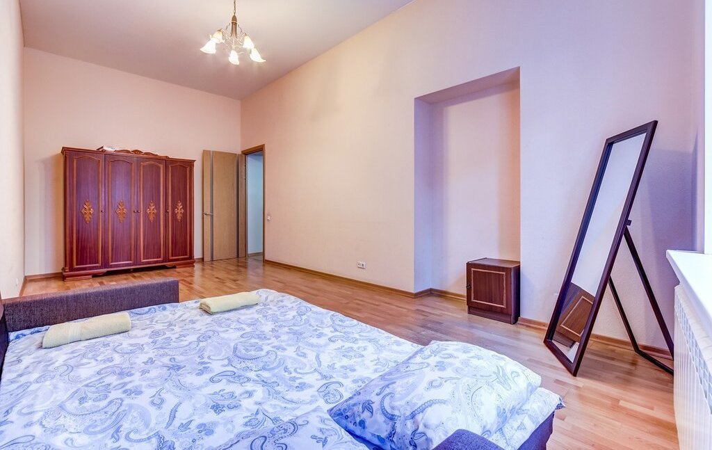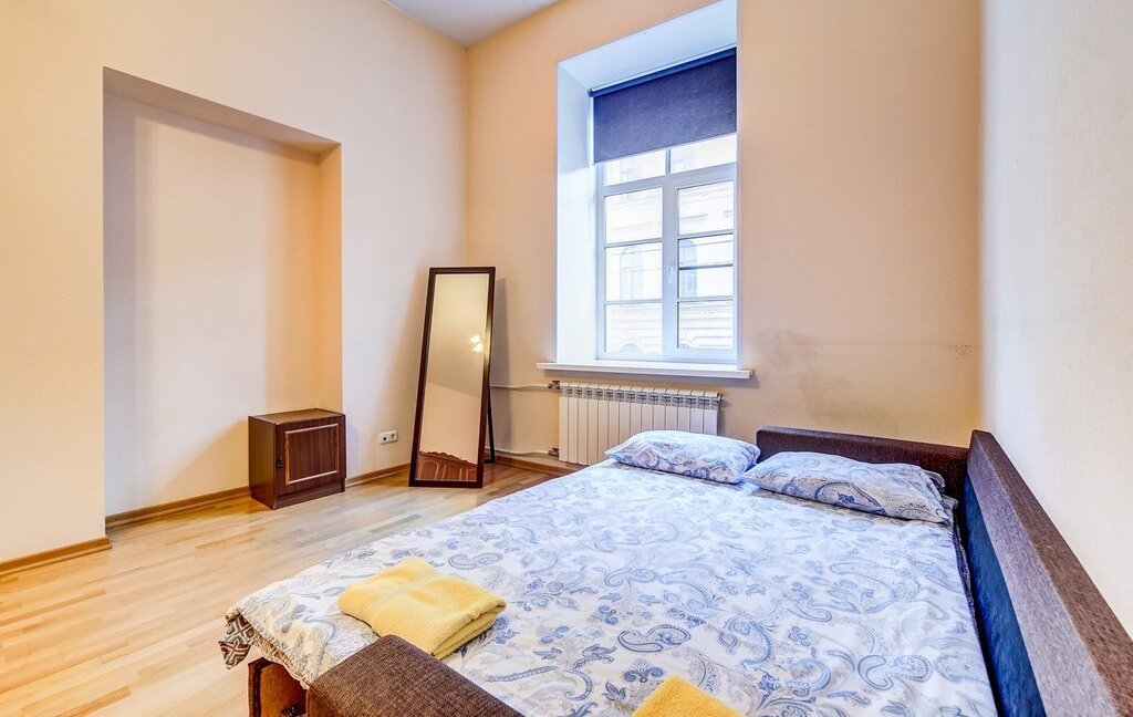 Эта просторная и уютная квартира расположена в самом центре Санкт-Петербурга, в нескольких шагах ходьбы от Невского проспекта – на Караванной улице на втором этаже пятиэтажного дома без лифта .