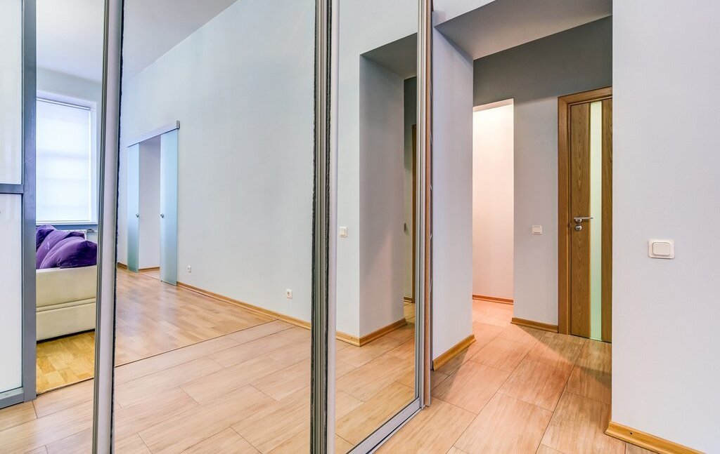 В квартире имеется большой зеркальный шкаф-купе. Квартира оснащена высокоскоростным интернетом (Wi-Fi).