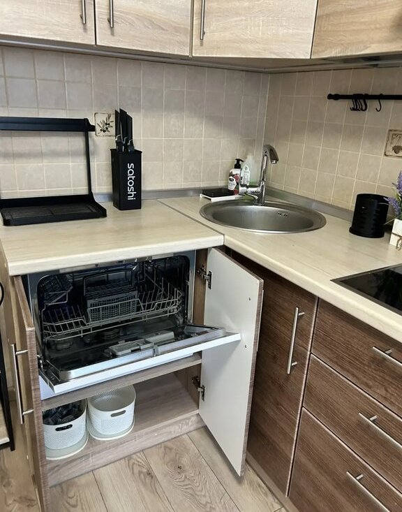 В квартире есть все необходимое для комфортного проживания:холодильник, посудомоечная машина, микроволновая печь, телевизор, стиральная машина . На кухне и в комнате установлена мебель. Ванная комната оборудована современной душевой кабиной.
