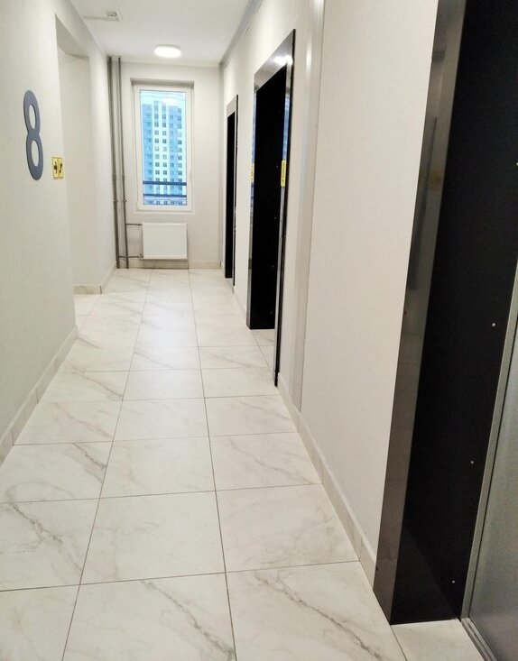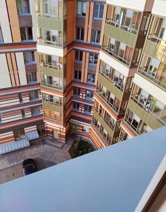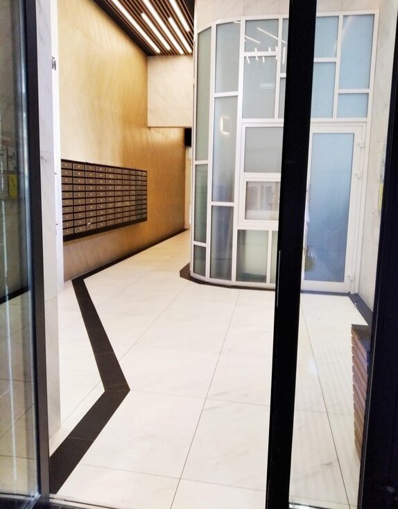 - Подъезд расположен со стороны двора (не со стороны фасада — там находятся входы в коммерческие помещения).