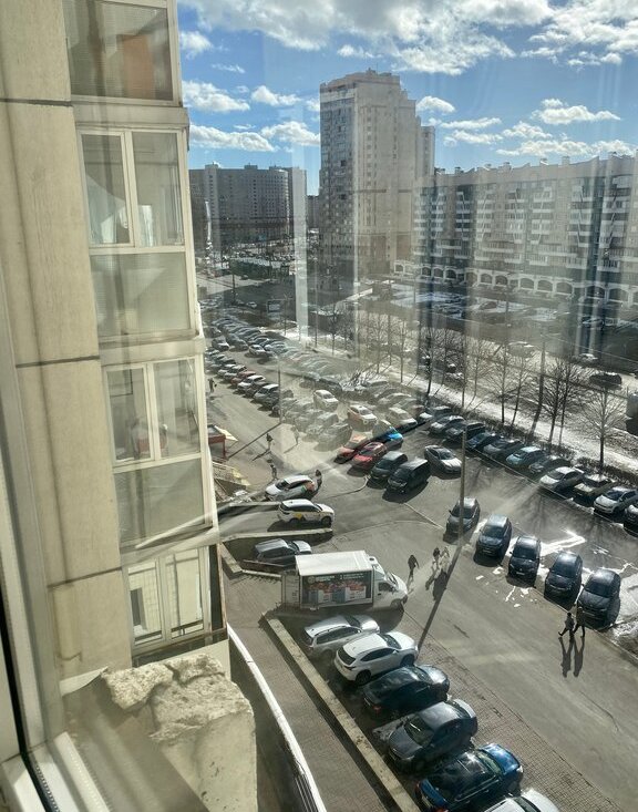 Напротив дома метро "Комендантский проспект"