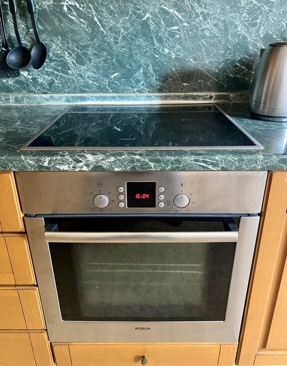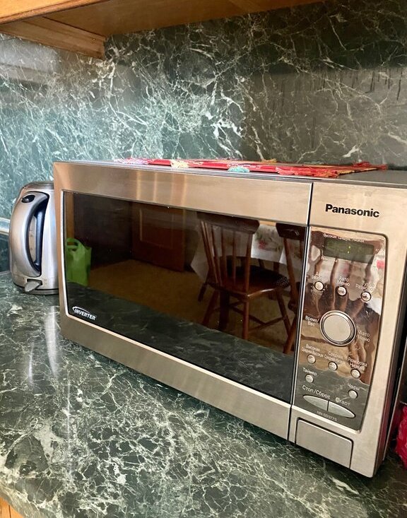 Кухня: просторная, плита, холодильник, микроволновка, посуда Обеденная зона + выход на балкон