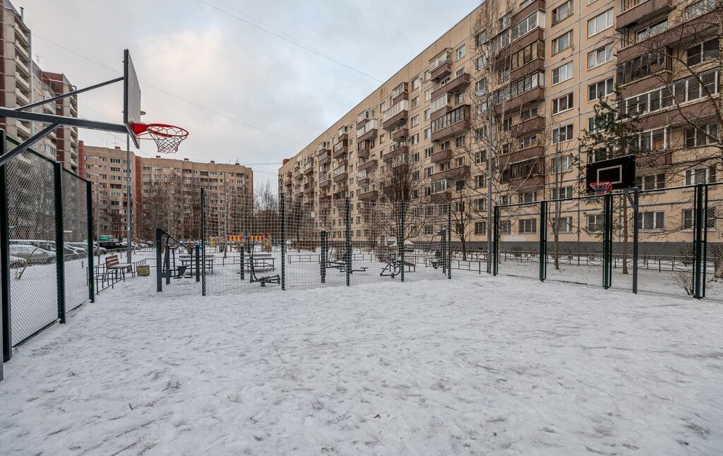 Тихий зеленый двор с детской площадкой, спортивными полями и уличными тренажерами. В шаговой доступности несколько школ и детских садов, взрослая и детская поликлиники, зеленые аллеи, парки и зоны для прогулок – «Юнтоловский заказник» и «Озеро долгое», словом, очень много зелени. Рядом торговый центр «5 Озер», у метро «Атмосфера», в 15 минутах езды два крупных торговых центра «Голливуд» и «Ситимолл». Прямо рядом с домом круглосуточный большой магазин «Перекресток», чуть дальше «Пятерочка», еще дальше гипермаркет «Лента». Есть как минимум 3 фитнес клуба в шаговой доступности 10-15 минут.