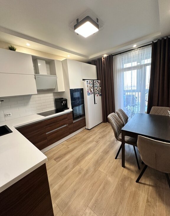 Продается уютная квартира с современным ремонтом из дорогих экологичных материалов: паркетная доска в комнатах, тканевые немецкие натяжные потолки в с/у, немецкие обои на натуральной основе, качественная сантехника, межкомнатные двери из дерева.