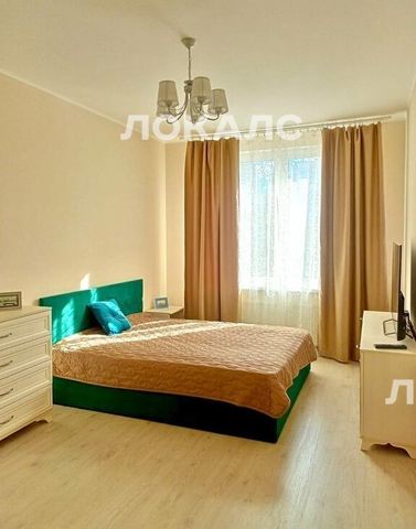 В квартире 2 спальни. Первая 15,4 м2 с двухспальной кроватью, тумбочкой, комодом, шкафом, тумбой с телевизором. Вторая 13,2 м2 с широкой односпальной кроватью, тумбочкой, шкафом, окном в пол с выходом на лоджию.
