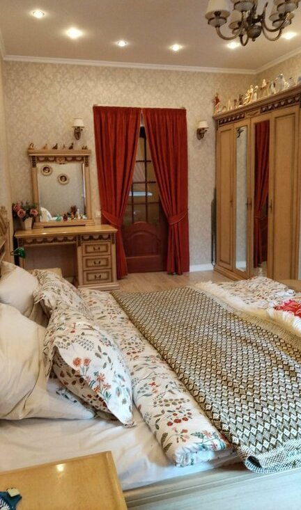 В квартире выполнен качественный ремонт, стены украшены декоративными элементами. Просторная кухня оснащена всем необходимым, включая газовую плиту и встроенную технику. В ванной комнате установлена современная душевая кабина.