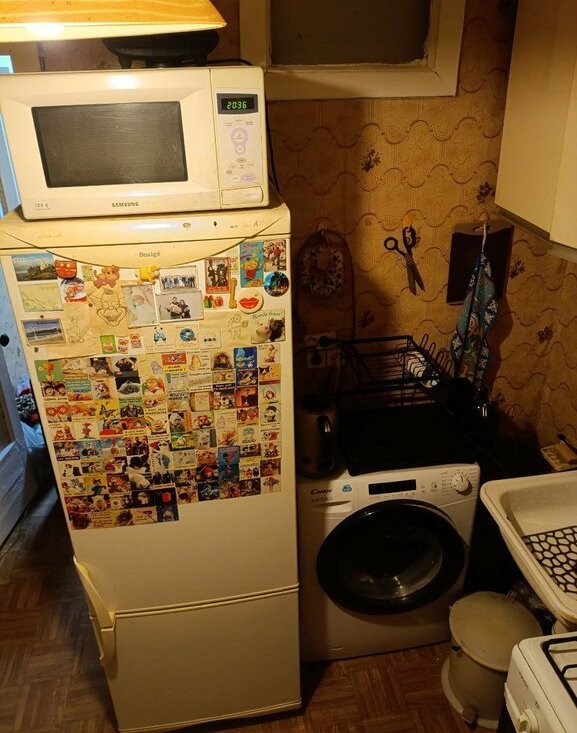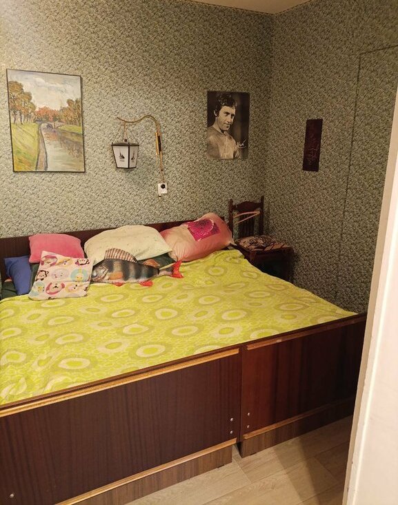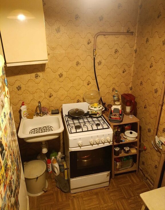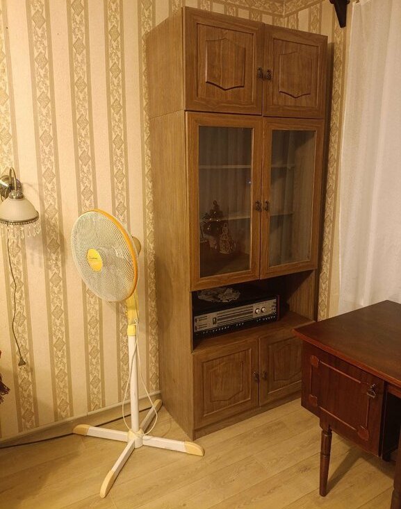 В квартире есть вся необходимая мебель: 3 шкафа полностью пустых для ваших вещей, 2 кровати односпальные, на фото они сдвинуты и получается двухспальная, 2 стола, много светильников, есть подушки, одеяла и даже комплекты постельного белья если требуются. На кухне из бытовой техники — холодильник, стиральная машина и микроволновая печь, также стол и шкаф для хранения посуды, посуда в доме есть вся от тарелок до кастрюль. Санузел раздельный. Вся сантехника работает исправна все меняли.