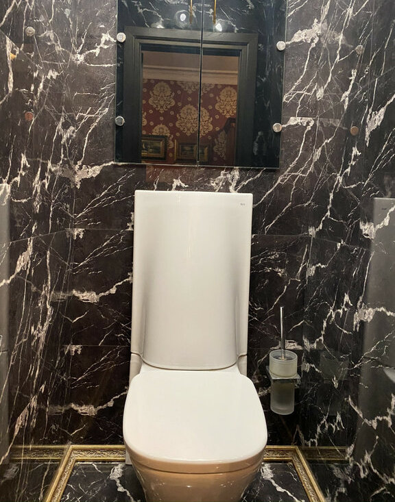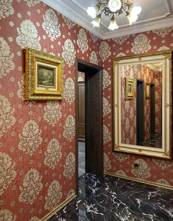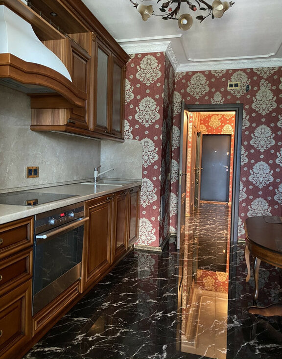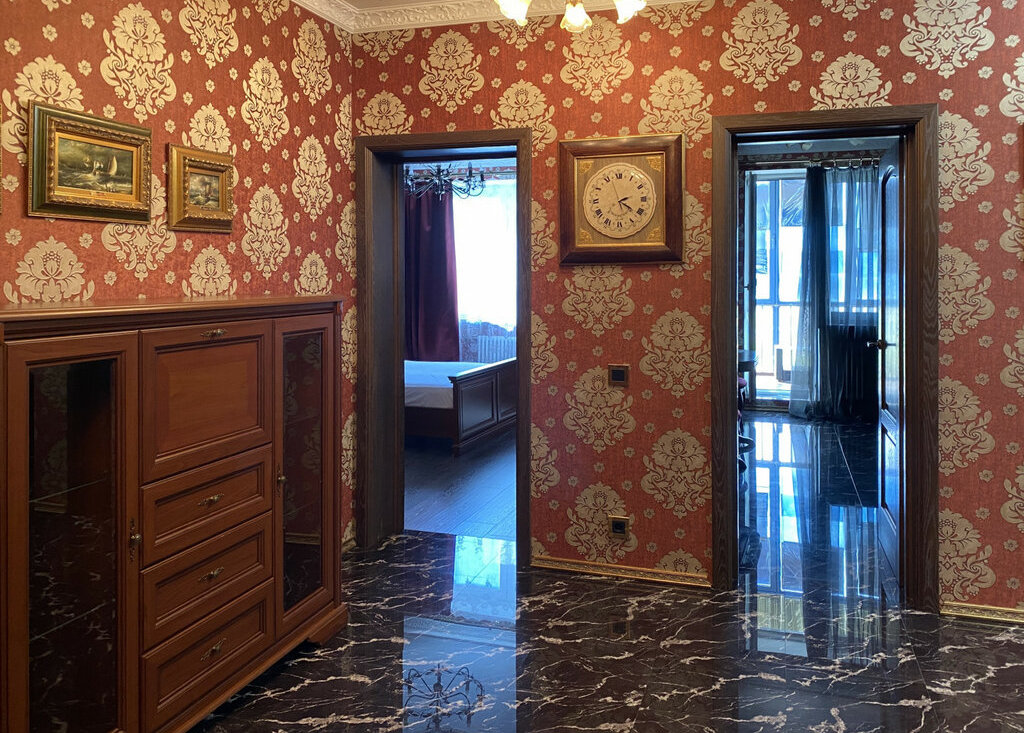 На полу в комнатах паркет, коридор, кухня и санузлы - керамогранит.
