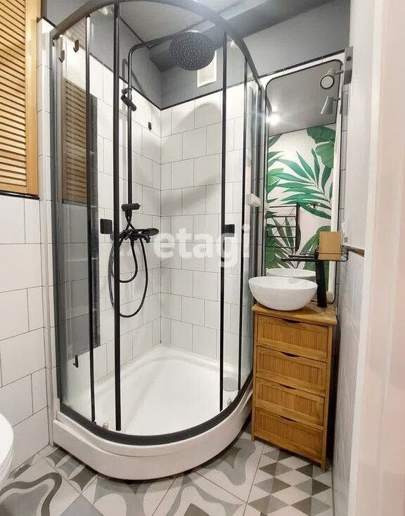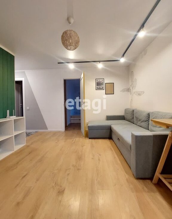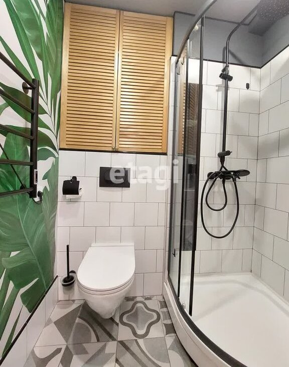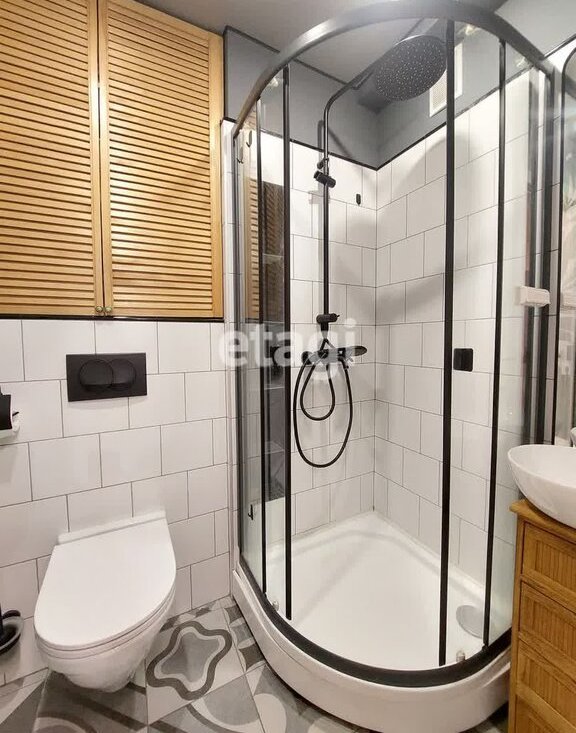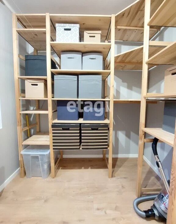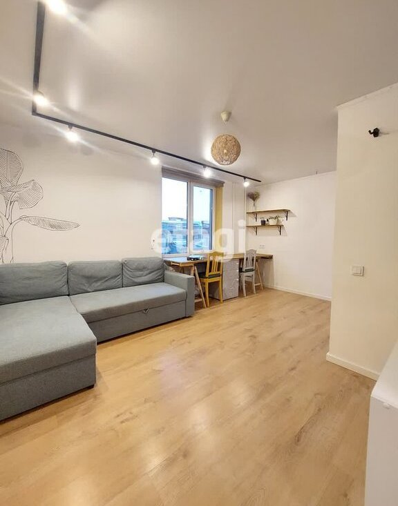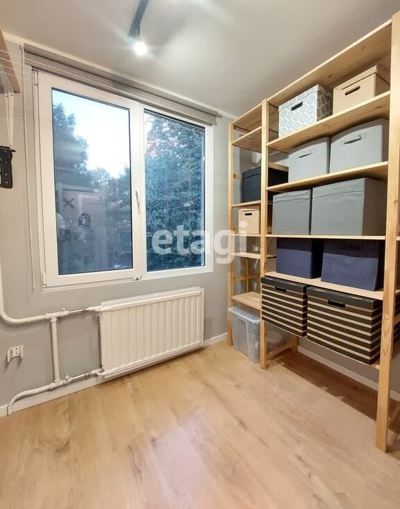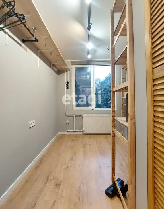 Отдельным преимуществом является большая комната, оформленная как гардеробная, которую при необходимости легко трансформировать в кабинет или детскую. Санузел совмещенный.