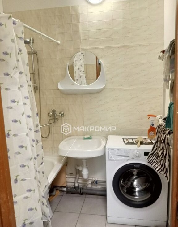 В ванной установлена стиральная машина .
