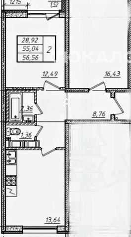 2-комнатная квартира: Санкт-Петербург, Ленинский проспект, 68 (56.56 м²)
