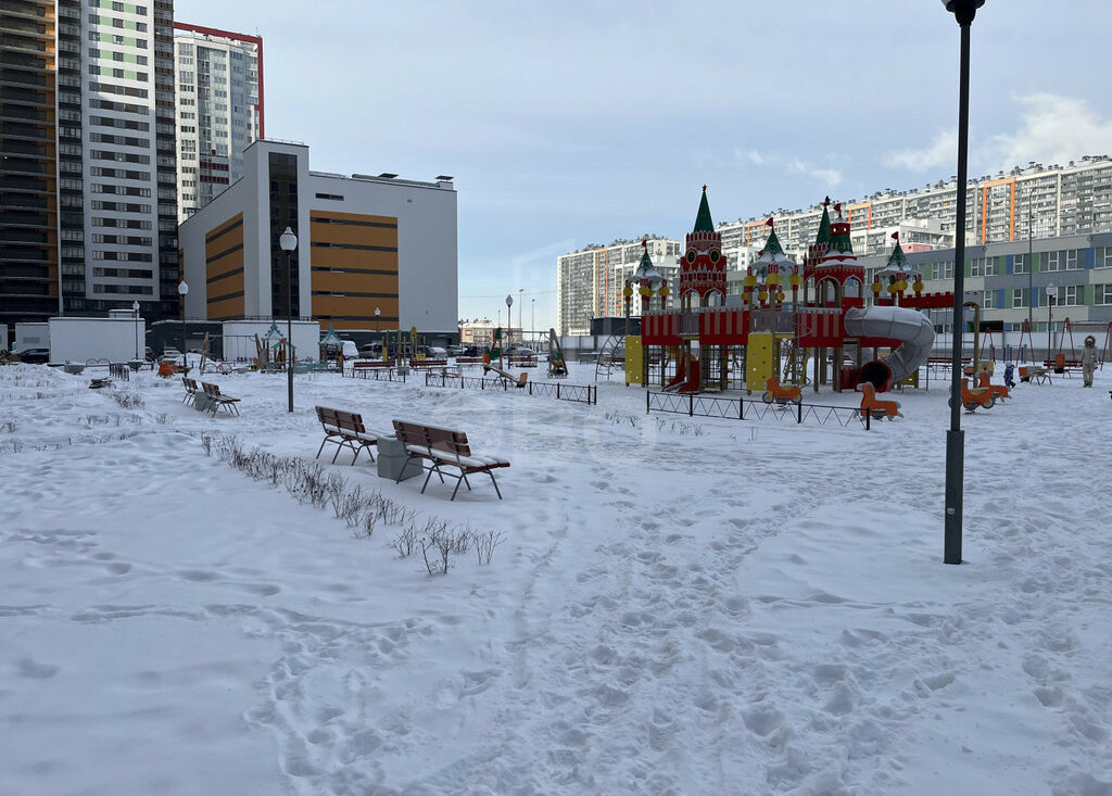 Инфраструктура района:супермаркеты («Лента», «Пятёрочка»);аптеки;пункты выдачи заказов (ПВЗ);фитнес‑центры;школа и детский сад — во дворе дома;ещё два детских сада — в соседних дворах.