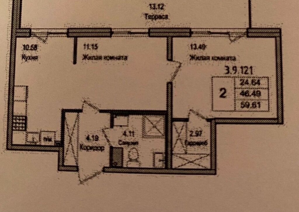 3-комнатная квартира: Санкт-Петербург, улица Кораблестроителей, 23к2 (65 м²)